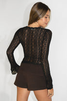 ARLETTE Scalloped V-Neck Long Sleeves Sheer Lace Top